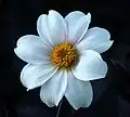 - Groupe 1 - dahlias à fleurs simples (Sin) - Fleur à disque central avec un seul anneau extérieur de fleurettes (qui peuvent se chevaucher) l'encerclant, et qui peut être arrondi ou pointu.