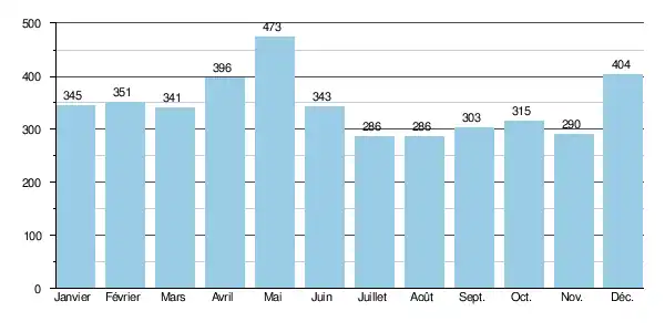 | Mois | jan. | fév. | mars | avril | mai | juin | jui. | août | sep. | oct. | nov. | déc. | année |