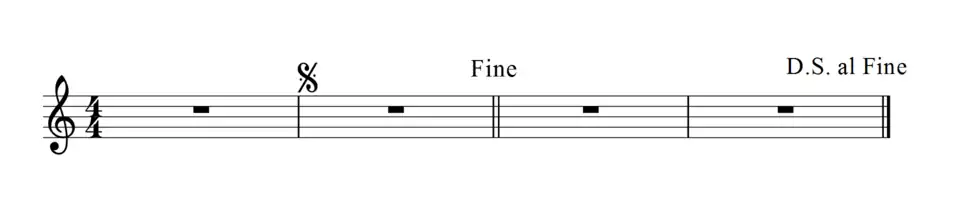 Dal Segno al Fine, abrégé en D.S. al Fine, indique à l'interprète qu'il doit répéter la pièce depuis le signe ou «segno»[1] jusqu'à arriver à la mesure marquée avec le mot «fine» et là, il doit terminer l'interprétation (voir Figure 2).