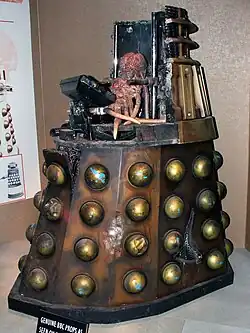 - On retrouve de nombreuses critiques et blagues au sujet des Daleks : le fait qu'ils ressemblent à une poivrière, qu'ils aient une arme en forme de ventouse, qu'ils ne peuvent pas monter un escalier ou qu'ils sont lents[2],[3],[4]. Si les Daleks peuvent voler depuis l'épisode The Chase, on ne voit ceux-ci se lever au-dessus d'escaliers que dans Remembrance of the Daleks (1988).