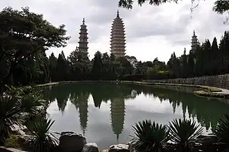 - Temple de l'Admiration pour la Divinité ou temple Chongsheng (重聖寺, ), où se trouvent les Trois Pagodes ;