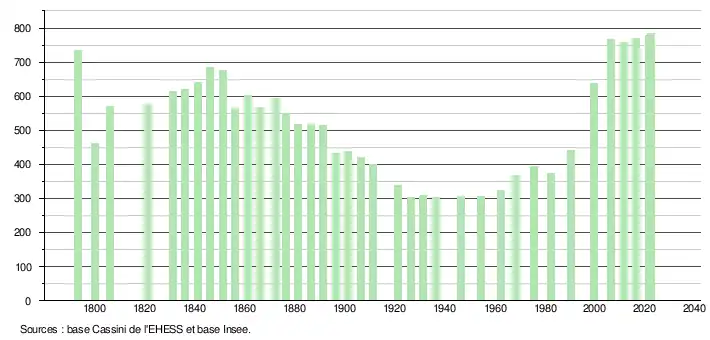 - ↑ Fiches Insee - Populations de référence de la commune pour les années 2006, 2007, 2008, 2009, 2010, 2011, 2012, 2013, 2014, 2015, 2016, 2017, 2018, 2019, 2020, 2021 et 2022.