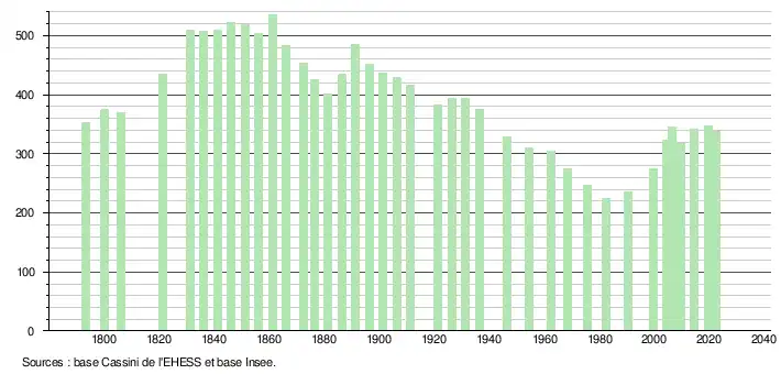 - ↑ Fiches Insee - Populations de référence de la commune pour les années 2006, 2007, 2008, 2009, 2010, 2011, 2012, 2013, 2014, 2015, 2016, 2017, 2018, 2019, 2020, 2021 et 2022.