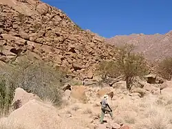 Chemin menant à la Dame blanche, dans le massif du Brandberg.