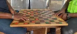 Certaines variantes de ce jeu utilisent des damiers de 64 cases (8 sur 8) et 144 cases (12 sur 12).