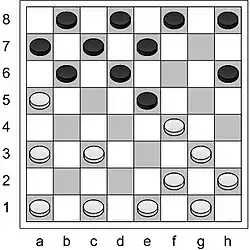 Une autre notation utilise les 32 cases numérotées comme dans le diagramme ci-contre.