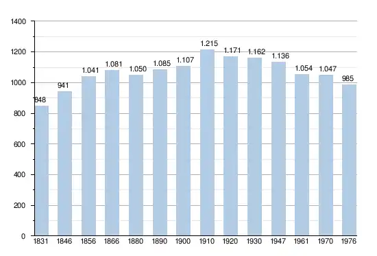 En tenant compte des anciennes communes entraînées dans la fusion de communes de 1977, on peut dresser l'évolution suivante: