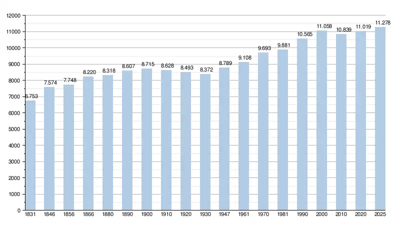 - Sources : INS, Rem. : 1831 jusqu'en 1970 = recensements, 1976 = nombre d'habitants au 31 décembre[2].