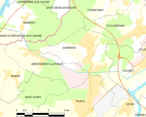 - ↑ « Orthodromie entre Damparis et Tavaux », sur fr.distance.to (consulté le ).