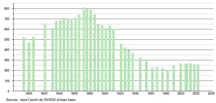 - ↑ Fiches Insee - Populations de référence de la commune pour les années 2006, 2007, 2008, 2009, 2010, 2011, 2012, 2013, 2014, 2015, 2016, 2017, 2018, 2019, 2020, 2021 et 2022.