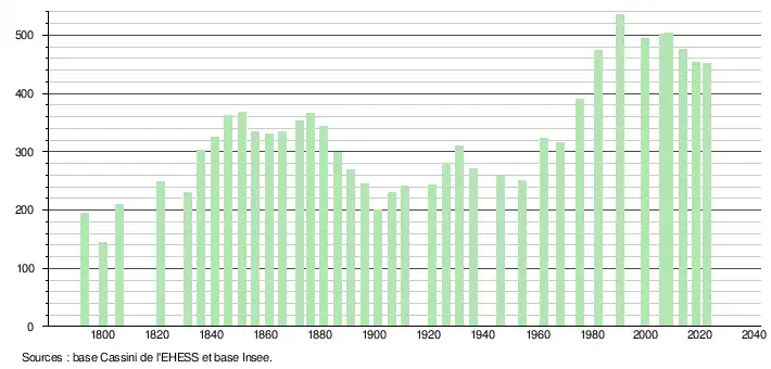 - ↑ Fiches Insee - Populations de référence de la commune pour les années 2006, 2007, 2008, 2009, 2010, 2011, 2012, 2013, 2014, 2015, 2016, 2017, 2018, 2019, 2020, 2021 et 2022.