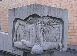 sculpture, décoration artistique d'édifice, sculpture intégrée, fontaine, aménagement de place |