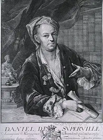 Après avoir réussi à guérir le roi Frédéric II de Prusse d'un œdème, Daniel de Superville devient en 1738, le médecin personnel de la princesse Wilhelmine de Prusse, sœur de Frédéric II. Superville est bientôt un conseiller influent à la cour de Wilhelmine et de son mari, le margrave Frédéric III de Brandebourg-Bayreuth. Il est aussi admis à l’Académie royale des sciences et des lettres de Berlin en 1739.