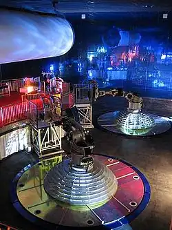 L'attraction Danse avec les robots est une salle de bal de 1 265 m2, qui comprend 10 robocoasters[1], des robots polyarticulés de 7 m de haut. Ces bras robotisés, qui comprennent chacun six articulations, sont fabriqués par la société allemande KUKA Roboter GmbH, le leader européen de la robotique industrielle. Ils sont capables de faire subir des accélérations de 3 g et de soulever une charge de 500 kilogrammes[2].