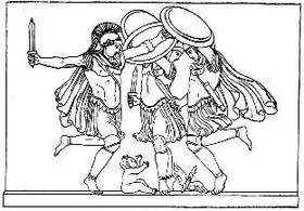On sait peu de chose sur la danse extatique dans l'antiquité. Cependant, la mythologie grecque a plusieurs histoires des Ménades. Les ménades étaient des adoratrices enivrées du dieu grec du vin, Dionysos, connues pour leurs "révélations extatiques et leurs danses frénétiques"[6],[7]. Les mythiques adeptes féminines de Dionysos, comprenant les bacchants et les thyai ainsi que les ménades, auraient recherché le "délire sauvage" de la possession par le dieu pour pouvoir "sortir d'eux-mêmes", ce qu'on appelait "ekstasis". Les homologues masculins des Ménades étaient les Corybantes (grec Κορύβαντες), des danseurs extatiques armés et huppés qui adoraient la déesse phrygienne Cybèle avec des tambours et des danses. Ils étaient la progéniture de la muse Thalie et du dieu Apollon. Les Grecs les confondaient souvent avec d'autres confréries mâles extatiques, comme les Dactyles idéens ( Greek Δάκτυλοι Ἰδαῖοι) ou les Corybantes crétois (Κουρῆτες), des jeunes esprits (kouroi) dotés de pouvoirs magiques qui ont agi en tant que gardiens de l'enfant Zeus[8].