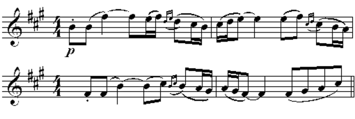 - [b’ + e’] Danse glissée des jeunes filles (reprise, combinée avec une danse rapide des garçons) : Moderato alla breve, 2/2