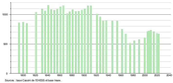 - ↑ Fiches Insee - Populations de référence de la commune pour les années 2006, 2007, 2008, 2009, 2010, 2011, 2012, 2013, 2014, 2015, 2016, 2017, 2018, 2019, 2020, 2021 et 2022.