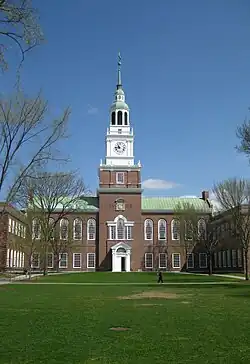 Créé en 1769 par Eleazar Wheelock, avec des fonds levés partiellement par les efforts d'un prêcheur appelé Samson Occom (1723-1792), le Dartmouth College fonctionne aujourd'hui avec un budget annuel de 629,4 millions de dollars et une dotation (endowment) de 4,5 milliards de dollars en 2015[1].