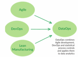 Le DevOps se concentre sur la livraison continue en tirant parti des ressources informatiques à la demande et en automatisant les tests et le déploiement de logiciels. Cette fusion du développement de logiciels et des opérations informatiques a amélioré la vitesse, la qualité et la prédictibilité. Empruntant des méthodes au DevOps, le DataOps cherche à apporter ces mêmes améliorations à l'analyse de données[3].