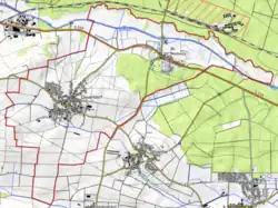 L'occupation des sols de la commune, telle qu'elle ressort de la base de données européenne d’occupation biophysique des sols Corine Land Cover (CLC), est marquée par l'importance des territoires agricoles (76,8 % en 2018), en diminution par rapport à 1990 (82,3 %). La répartition détaillée en 2018 est la suivante : terres arables (69,7 %), forêts (12,1 %), zones urbanisées (11,1 %), zones agricoles hétérogènes (7,2 %)[18]. L'évolution de l’occupation des sols de la commune et de ses infrastructures peut être observée sur les différentes représentations cartographiques du territoire : la carte de Cassini (XVIIIe siècle), la carte d'état-major (1820-1866) et les cartes ou photos aériennes de l'IGN pour la période actuelle (1950 à aujourd'hui)[Carte 3].