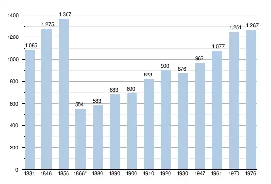- Sources:INS, Rem:1831 jusqu'en 1970=recensements, 1976= nombre d'habitants au 31 décembre