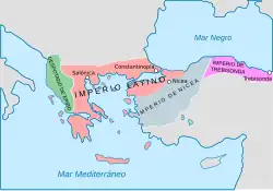 Si David Comnène, plus belliqueux que son frère avait peut-être songé à reconquérir Constantinople[25], c’était également le but de Théodore Laskaris (r. 1205 – 1221), lequel après la chute de Constantinople s’était établi avec son frère Constantin à Nicée.
