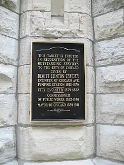- En 1933, une plaque commémorative a été érigée sur la façade ouest de la Chicago Water Tower, en l'honneur des services rendus par Cregier à la ville de Chicago.
