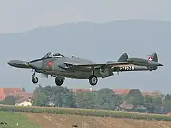 - la Suisse [8] a construit sous licence 126 Venom Mk.1 (immatriculés J-1501 à J-1625, et J-1650)[9], 24 Venom Mk1-R (équipés de caméras de reconnaissance et immatriculés J-1626 à J-1649)[10] et 100 Venom FB.4 (immatriculés J-1701 à J-1800)[11]. Livrés à partir de 1953, ces avions sont retirés du service en 1983.