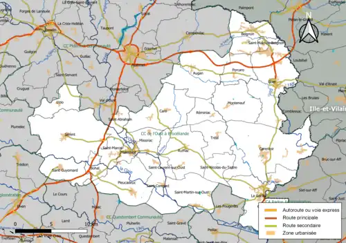 Située dans l'est du département du Morbihan, l'intercommunalité De l'Oust à Brocéliande Communauté regroupe 26 communes et s'étend sur 640,1 km2[4].