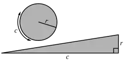 « Un cercle quelconque est égal à un triangle rectangle dont un des côtés de l'angle droit est égal au rayon de ce cercle, et dont l'autre côté de l'angle droit est égal à la circonférence de ce même cercle[3]. »