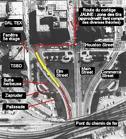 Dealey Plaza d'après le rapport de la Commission Warren. | ||