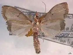 Son envergure est d'environ 20 mm. Les ailes antérieures sont de couleur blanches avec des parties plus sombres. La couleur de fond des ailes postérieures est blanche.