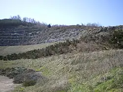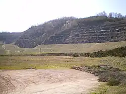 À côté de cette découverte se trouve un terril appelé crassier localement, composé de «crasses», de déchets organiques, de minéraux non intéressants (grès, argile, rhyolite...) et de stériles ou résidus de mine et d'usine (schistes, cendres). Ce crassier culminait à plus de 400 m d'altitude puis il s'est légèrement affaissé avec le temps.