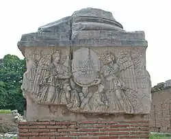 Des monuments pouvaient également être construits pour cette occasion comme l'ensemble des colonnes honorifiques élevées sur le forum pour les secondes decennalia de Dioclétien et Maximien — on parle alors volontiers de vicennalia associées aux decennalia de Constance Chlore et Galère - en 303[14].