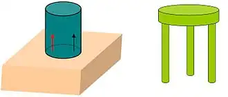 Par exemple, un tabouret à trois pied peut toujours trouver son assise au sol, contrairement à une chaise à 4 pattes qui se retrouve souvent bancale ; parce qu'un des pieds est superflu, il y a nécessité de « réglage » pour assurer les 4 points de contact. 4 pieds = 4 degrés de liaison 4 > 3 (degrés de liaison pour un appui plan)