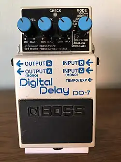Les delays numériques sont des pédales d'effet, racks ou multieffets qui se basent sur la numérisation du signal. Un processeur permet de répéter la note, en lui appliquant plusieurs traitements (filtres, modulation, saturation, etc). Ils peuvent être monophoniques ou stéréo.