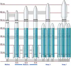 Le lanceur est décliné en deux sous-familles : les Delta-IV Medium et le lanceur lourd Delta IV Heavy.