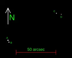 En 1978, des observations effectuées à l'Observatoire astronomique australien ont révélé que l'étoile primaire est une binaire spectroscopique, ce qui a été confirmé dans les années 1990 par le satellite Hipparcos[8].
