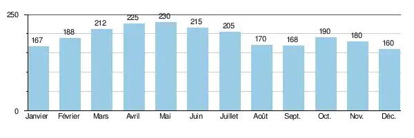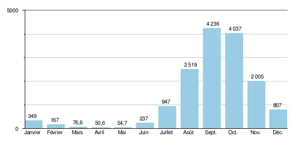 - Les hautes eaux (juillet-octobre) (avec un maximum toujours observé entre fin septembre et mi-octobre)