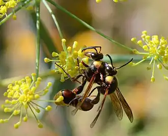 Accouplement de Delta unguiculatum sur fenouil (Charente, France) |