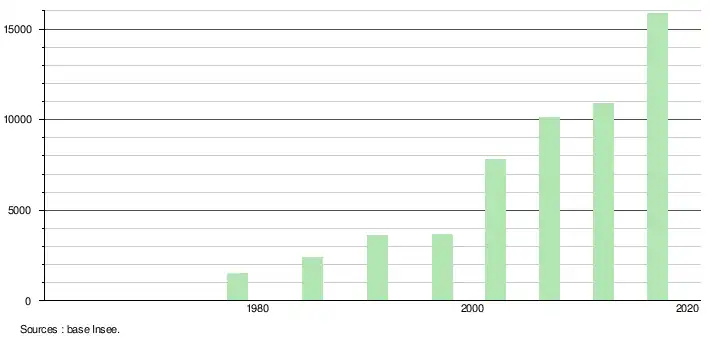 En 2017, la commune comptait 15 848 habitants[Note 3], en augmentation de 45,09 % par rapport à 2012