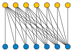 La même notion peut aussi être défini, et de la même manière, pour des graphes infinis sur deux copies d'un ensemble ordonné de sommets[1]. Le demi-graphe sur les entiers naturels (avec leur ordre habituel) a la propriété que chaque sommet a degré fini . Les sommets de l'autre côté de la bipartition ont en revanche un degré infini[2].