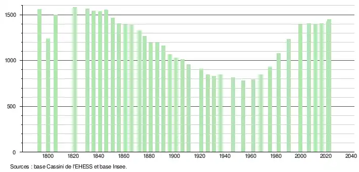 - ↑ Fiches Insee - Populations de référence de la commune pour les années 2006, 2007, 2008, 2009, 2010, 2011, 2012, 2013, 2014, 2015, 2016, 2017, 2018, 2019, 2020, 2021 et 2022.