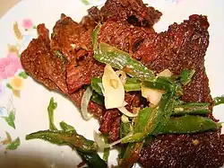 Le dendeng est une viande séchée finement tranchée de la cuisine indonésienne. Sa conservation est assurée grâce à un mélange de sucre et d'épices et il est séché par friture. Il est similaire au jerky.
