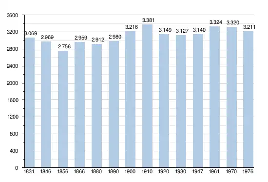 - Sources : INS, Rem. : 1831 jusqu'en 1970 = recensements, 1976 = nombre d'habitants au 31 décembre[3].