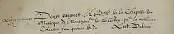 - ↑ AD Eure : D 3 f. 125v. Voir aussi ici. Avant Caignet, c'est Claude Le Painctre qui était maître de la chapelle de musique de Nicolas III de Villeroy, comme il apparaît aussi dans le registre du puy d'Évreux (il gagna le cornet au puy de musique en 1576).