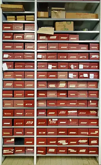 Ils sont pour la plupart conservés à sec dans des enveloppes en papier et leur inventaire est disponible en ligne sur le GBIF.