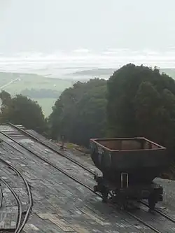 - (en) Coal skips on roperoad on Denniston plateau: Coal tubs on cable roperoad railway. Humphreys, W: Photographs of the Westport Coal Company's operation at Denniston. Ref: PA1-o-990-12. Alexander Turnbull Library, Wellington, New Zealand.