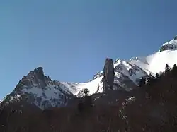- ↑ Denis Collangettes, G. Monneron et M. Chalier, Escalade dans le Puy-de-Dôme Tome III : Le Massif du Sancy, Fédération française de la montagne et de l'escalade (Denis Collangettes (1945-1999) fut le premier guide de haute montagne d'Auvergne)