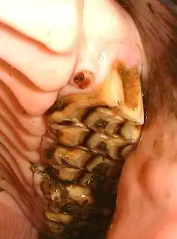 Les dents de loup sont des dents de cheval, en forme de piton, situées devant (rostrales) les dents jugales des chevaux et autres équins. Elles sont des vestiges des premières prémolaires et la première dent jugale est désignée comme la deuxième prémolaire même lorsque les dents de loup ne sont pas présentes. Torbjörn Lundström en Suède a déclaré qu'environ 45-50 % de 25000 chevaux avaient des dents de loup. Elles sont beaucoup moins fréquentes dans la mandibule (mâchoire inférieure) que dans le maxillaire (mâchoire supérieure).